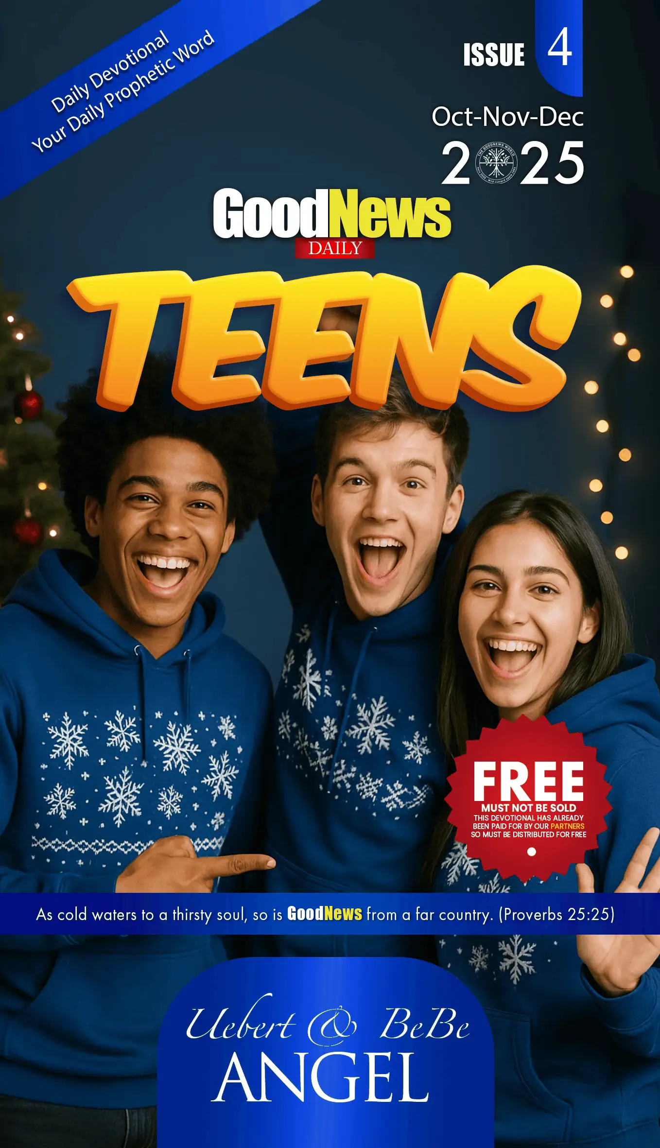 The globally popular daily devotional the GoodNews Daily Teens is reaching and impacting the world in a glorious manner. The faithful GoodNews World partners have ensured that this wonderful booklet has reached millions of homes around the world impacting the lives of children with the profound Word of God.